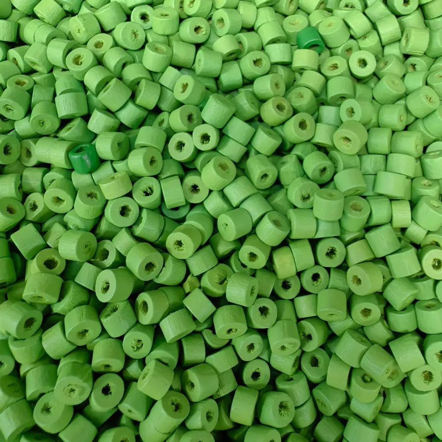 Green wooden bead. The package contains approximately 320 - 350 beads. Colors may vary according to monitor and light settings. Wooden beads can be used in accessory designs such as necklaces bracelets earrings keychains and in hobbies like macrame decorative items etc.