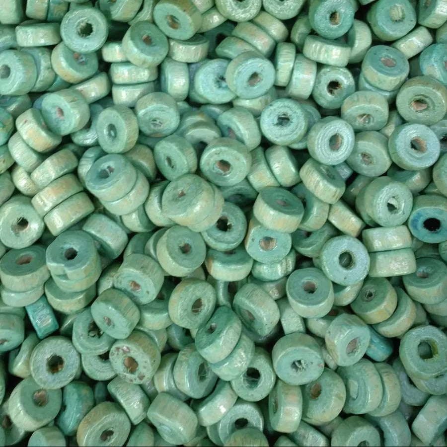 Turquoise wooden bead. The package contains approximately 200 beads. Colors may vary according to monitor and light settings. Wooden beads can be used in accessory designs such as necklaces bracelets earrings keychains and in hobbies like macrame decorative items etc.