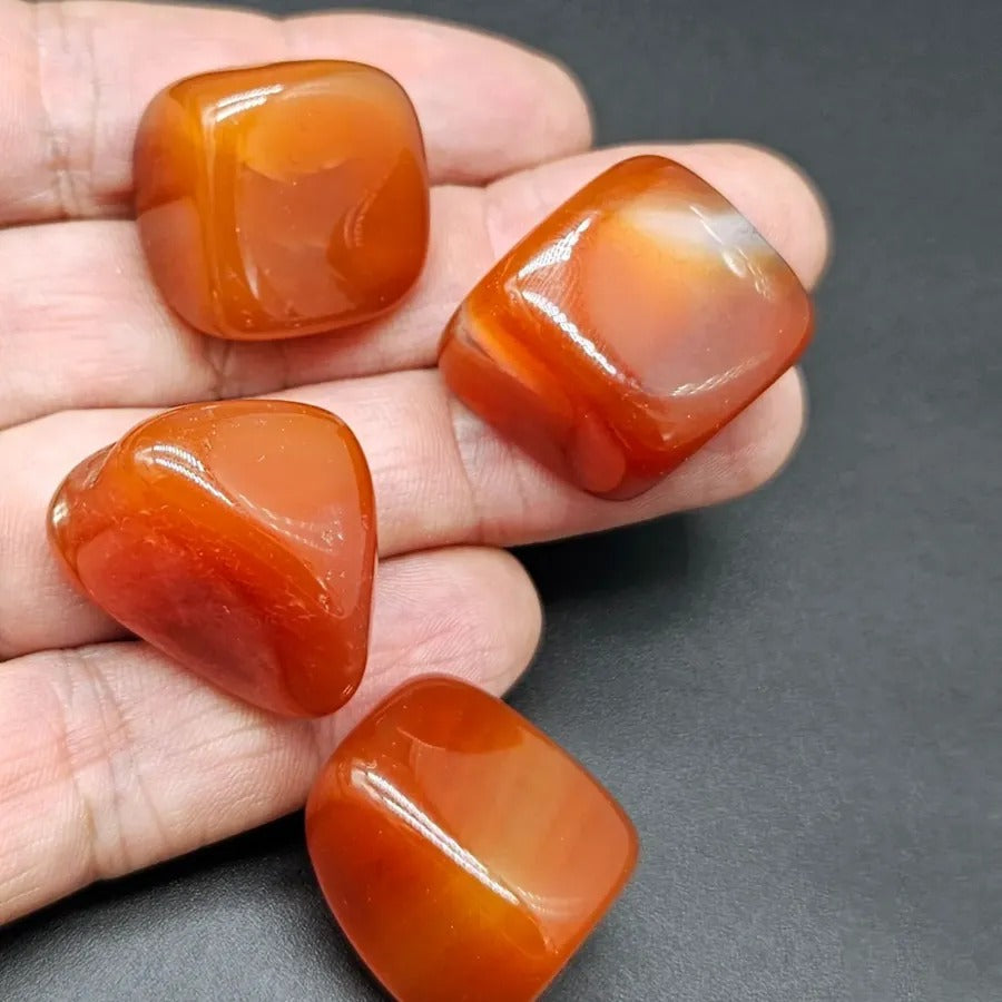 Orange Agate Stone Tumbled Natural Stone Energy Stones. Price per piece. Measurements: Varies between 3cm and 6cm. Thought to provide strength and optimism helping to alleviate stress. Compatible Zodiac Signs: Gemini Cancer Sagittarius Aries Leo Virgo Pisces. Chakra: Associated with the Solar Plexus Chakra (stomach chakra). Natural stones may contain different patterns veins and colors depending on their source. There may be slight color differences due to lighting and camera settings.