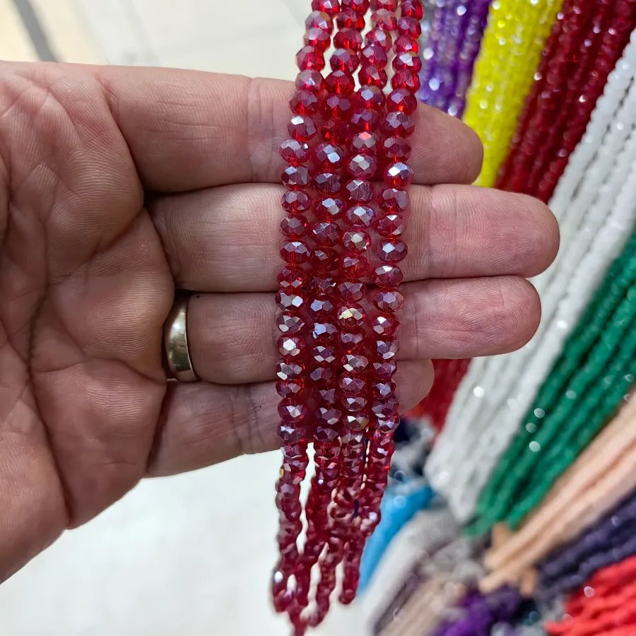 This is a 3 mm oval crystal. It is sold in a single strand and each strand contains approximately 145 - 152 beads. Crystal beads can be used in the design of necklaces bracelets and anklets. These crystal beads are made of glass and have a bright appearance due to their faceted cuts that reflect light. Avoid contact with chemicals and perfumes for long-lasting use. It does not contain any harmful materials. Colors may vary depending on screen settings and ambient lighting.