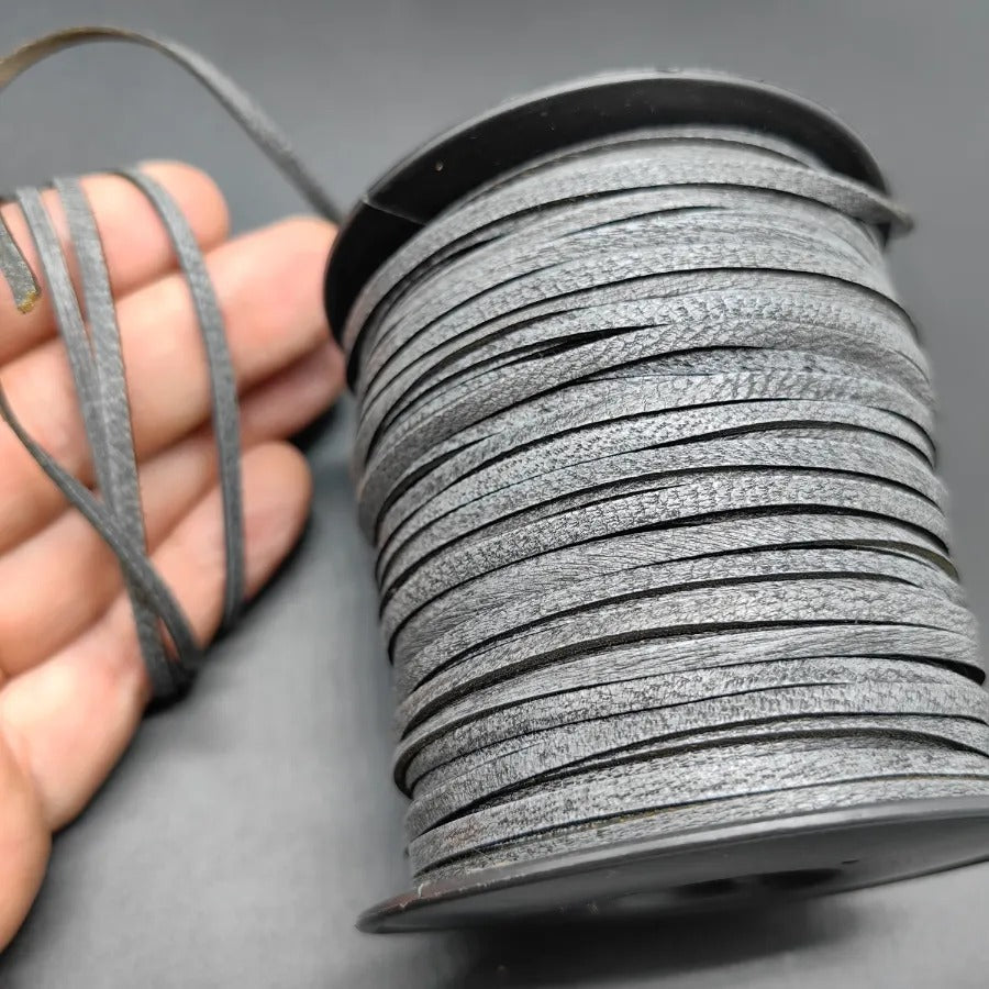 3mm Dark Gray Binding Genuine Leather 2 Meters. Made from real leather. Suitable for bracelet and jewelry designs. Price for 2 meters. High quality does not fade does not stretch specially produced. Contains no harmful substances and has passed all chemical tests. Colors may vary depending on screen settings and ambient lighting. Avoid contact with chemicals liquids and perfumes for long-term use.