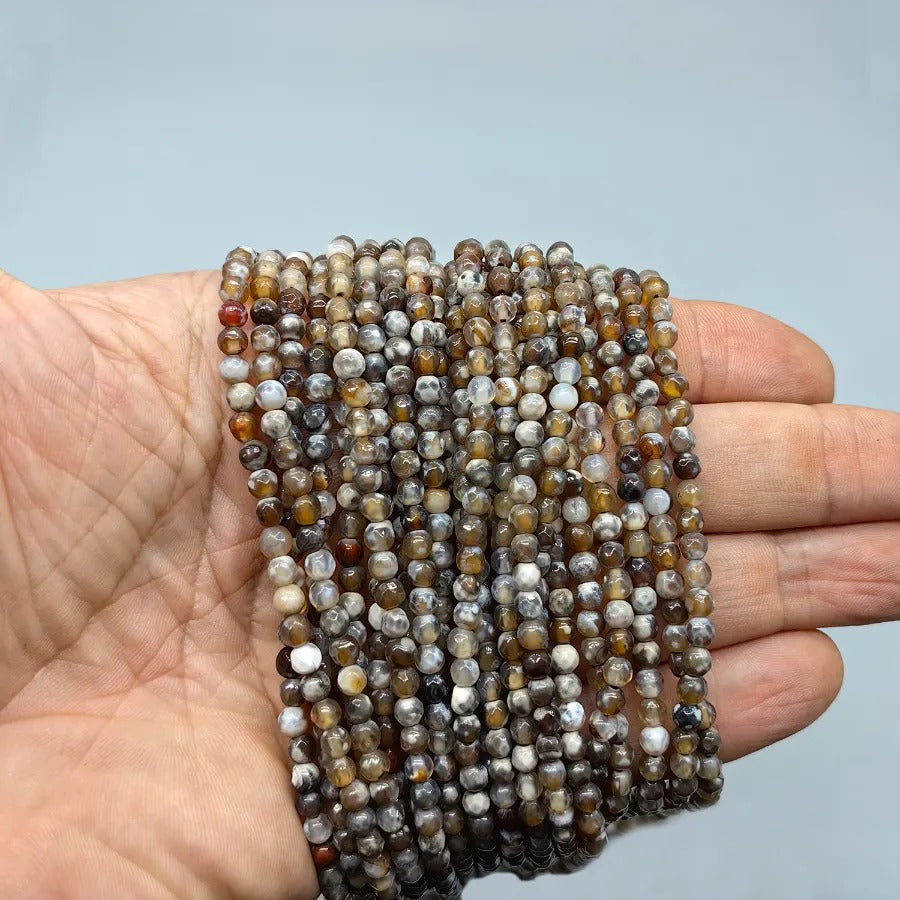 4 mm Faceted Sphere Cut Agate Natural Stone. Price per strand. Approximately 92 stones per strand. Natural stones may contain different patterns veins and colors depending on their source. Small color differences may occur due to light and camera settings.