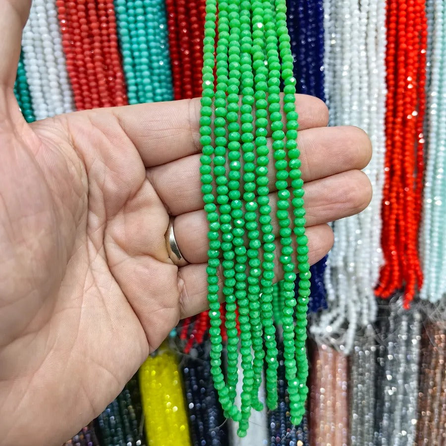 4 mm Round Cut Chinese Crystal Bead. 4 mm Oval Crystal. Sold in a single strand. Each strand contains approximately 120 - 130 beads. Crystal beads can be used in necklace bracelet and anklet designs. Crystal beads are made from glass. Their faceted cuts reflect light giving them a shiny appearance. Avoid contact with chemicals and perfume for long-term use. Contains no harmful materials. Colors may vary depending on screen settings and ambient light.