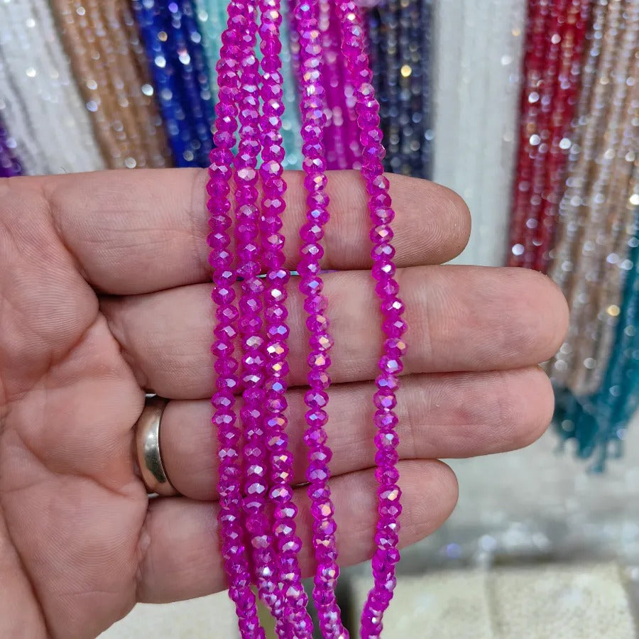 4 mm Round Cut Chinese Crystal Bead. 4 mm Oval Crystal. Sold in a single strand. Each strand contains approximately 120 - 130 beads. Crystal beads can be used in necklace bracelet and anklet designs. Crystal beads are made from glass. Their faceted cuts reflect light giving them a shiny appearance. Avoid contact with chemicals and perfume for long-term use. Contains no harmful materials. Colors may vary depending on screen settings and ambient light.