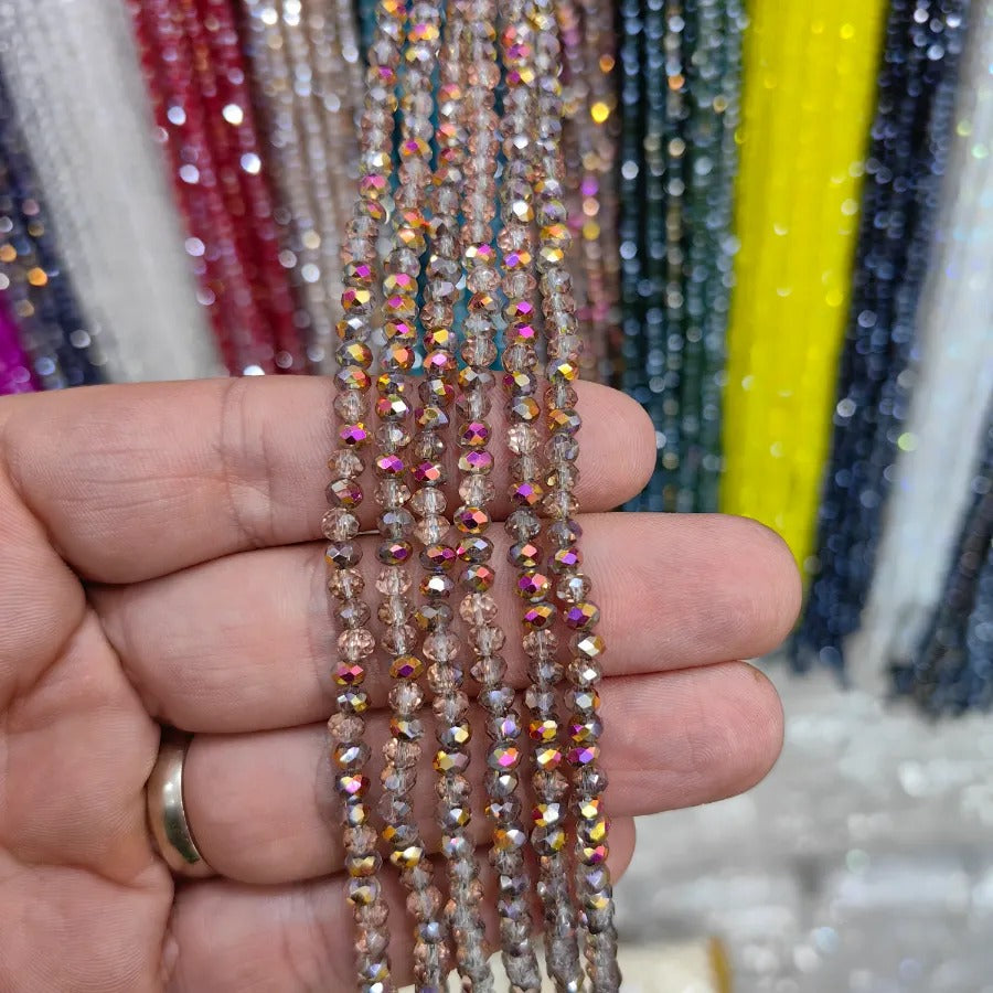 4 mm Round Cut Chinese Crystal Bead. 4 mm Oval Crystal. Sold in a single strand. Each strand contains approximately 120 - 130 beads. Crystal beads can be used in necklace bracelet and anklet designs. Crystal beads are made from glass. Their faceted cuts reflect light giving them a shiny appearance. Avoid contact with chemicals and perfume for long-term use. Contains no harmful materials. Colors may vary depending on screen settings and ambient light.