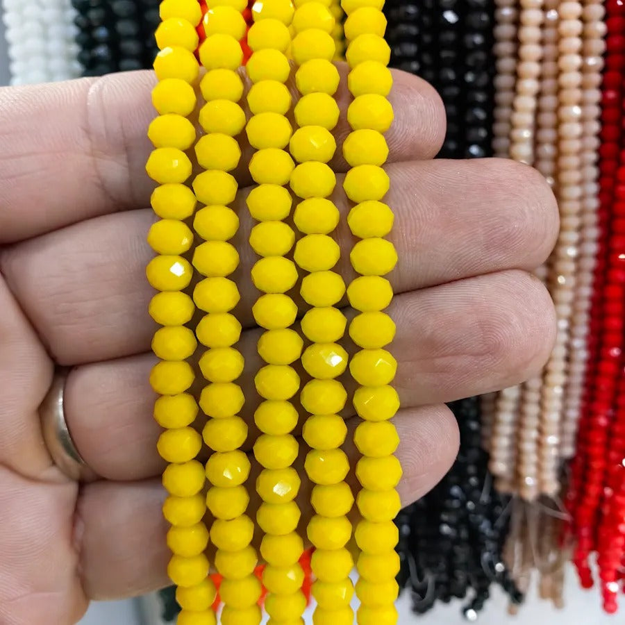 4 mm Round Cut Chinese Crystal Bead. 4 mm Oval Crystal. Sold in a single strand. Each strand contains approximately 120 - 130 beads. Crystal beads can be used in necklace bracelet and anklet designs. Crystal beads are made from glass. Their faceted cuts reflect light giving them a shiny appearance. Avoid contact with chemicals and perfume for long-term use. Contains no harmful materials. Colors may vary depending on screen settings and ambient light.