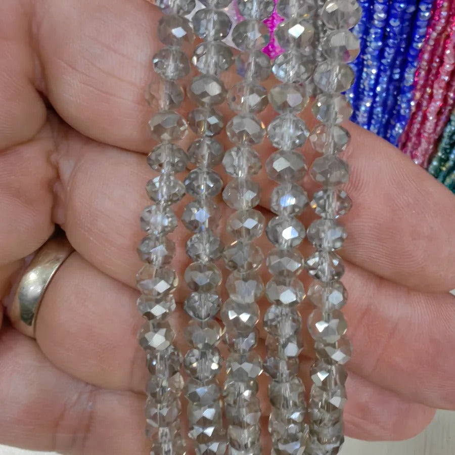 4 mm Round Cut Chinese Crystal Bead. 4 mm Oval Crystal. Sold in a single strand. Each strand contains approximately 120 - 130 beads. Crystal beads can be used in necklace bracelet and anklet designs. Crystal beads are made from glass. Their faceted cuts reflect light giving them a shiny appearance. Avoid contact with chemicals and perfume for long-term use. Contains no harmful materials. Colors may vary depending on screen settings and ambient light.