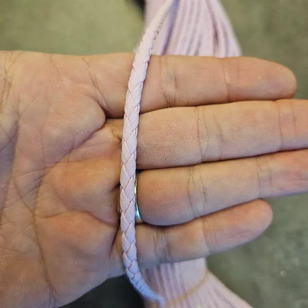 4mm Tube Weave Matte Light Pink Faux Leather can be used in bracelet and jewelry designs. The price is for 5 meters. It is of high quality does not fade does not stretch and is specially produced. Our products are not made from scrap PVC faux leather; they are made from first-class high-quality PU faux leather. It contains no harmful substances and has passed all chemical tests. Colors may vary depending on screen settings and ambient light. For long-lasting use avoid contact with chemicals liquids and perfumes.