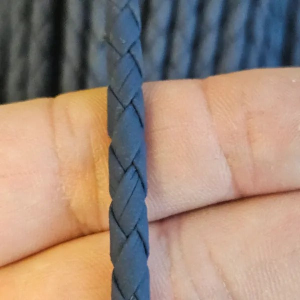4mm Tube Weave Matte Navy Blue Faux Leather can be used in bracelet and jewelry designs. The price is for 5 meters. It is of high quality does not fade does not stretch and is specially produced. Our products are not made from scrap PVC faux leather; they are made from first-class high-quality PU faux leather. It contains no harmful substances and has passed all chemical tests. Colors may vary depending on screen settings and ambient light. For long-lasting use avoid contact with chemicals liquids and perfumes.