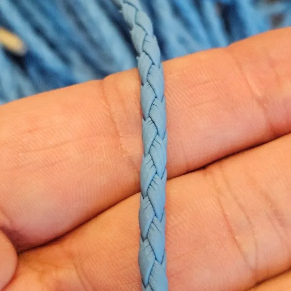 4mm Tube Weave Matte Turquoise Blue Faux Leather can be used in bracelet and jewelry designs. The price is for 5 meters. It is of high quality does not fade does not stretch and is specially produced. Our products are not made from scrap PVC faux leather; they are made from first-class high-quality PU faux leather. It contains no harmful substances and has passed all chemical tests. Colors may vary depending on screen settings and ambient light. For long-lasting use avoid contact with chemicals liquids and perfumes.