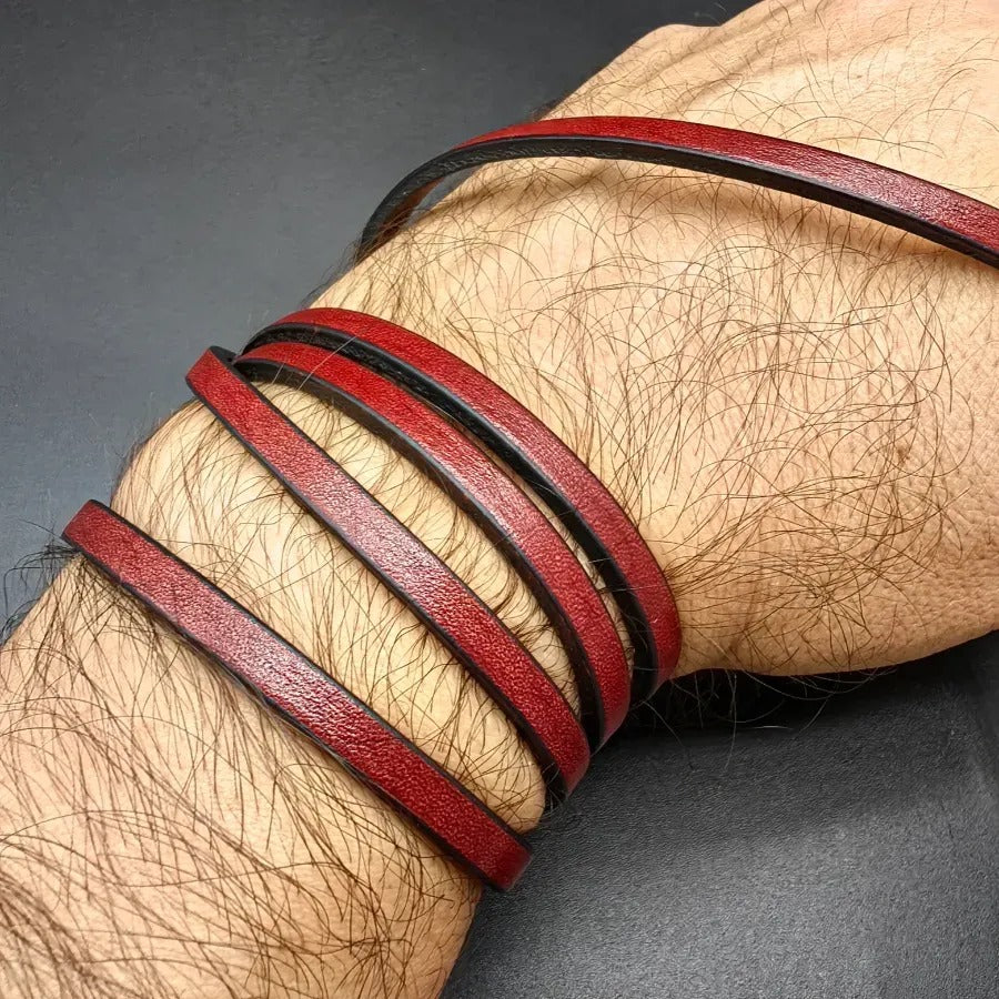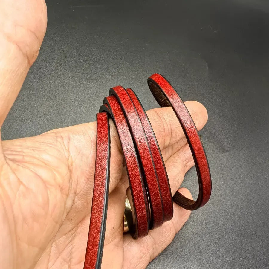4mm Burgundy Edge Silicone Black Painted Special Production Strap Cord Genuine Leather GL0050