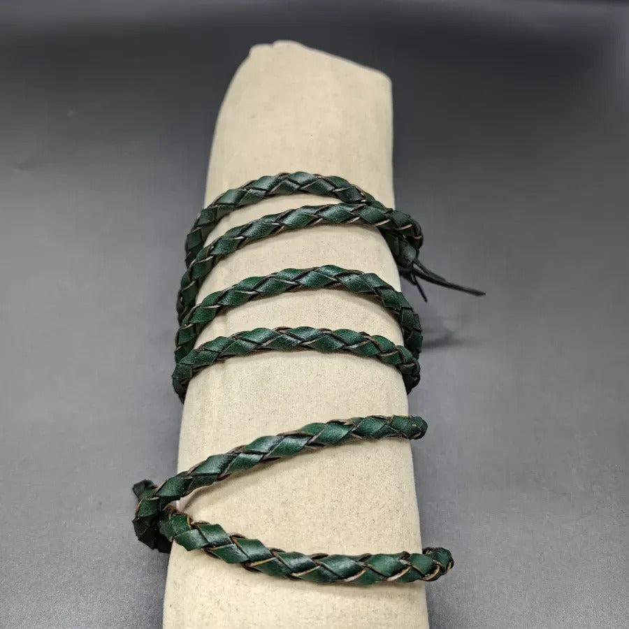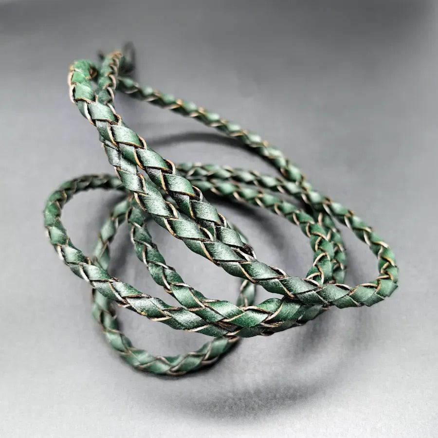 4mm Dark Green Braid Genuine Leather. Made from real leather. Suitable for bracelet and jewelry designs. Price per meter. High quality does not fade does not stretch specially produced. Contains no harmful substances and has passed all chemical tests. Colors may vary depending on screen settings and ambient lighting. Avoid contact with chemicals liquids and perfumes for long-term use.