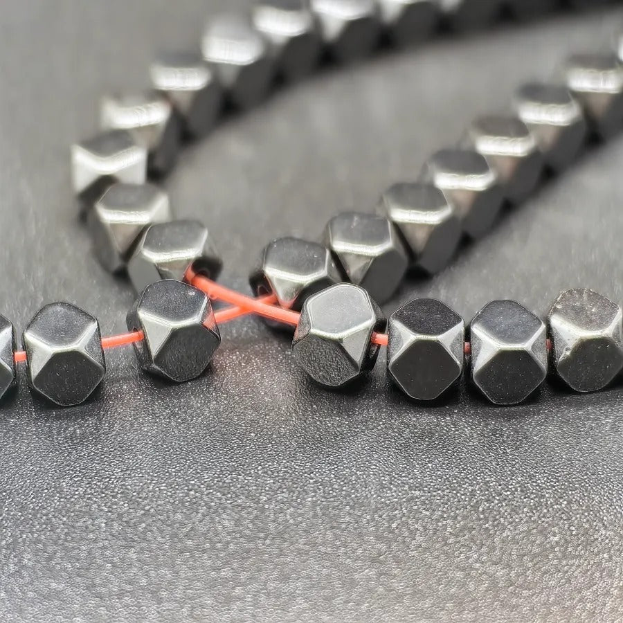 4 mm Gunmetal Hexagonal Hematite Natural Stone.Dimensions: 4 mm x 4 mm.Sold in strands.Each strand contains approximately 102 hematite stones.It is a natural hematite stone.Hematite is a shiny natural stone with a metallic appearance, believed to affect the root chakra.It is thought to provide energy, courage, and joy to the user while relieving stress.Hematite stones can be used in the design of bracelets, necklaces, and earrings.