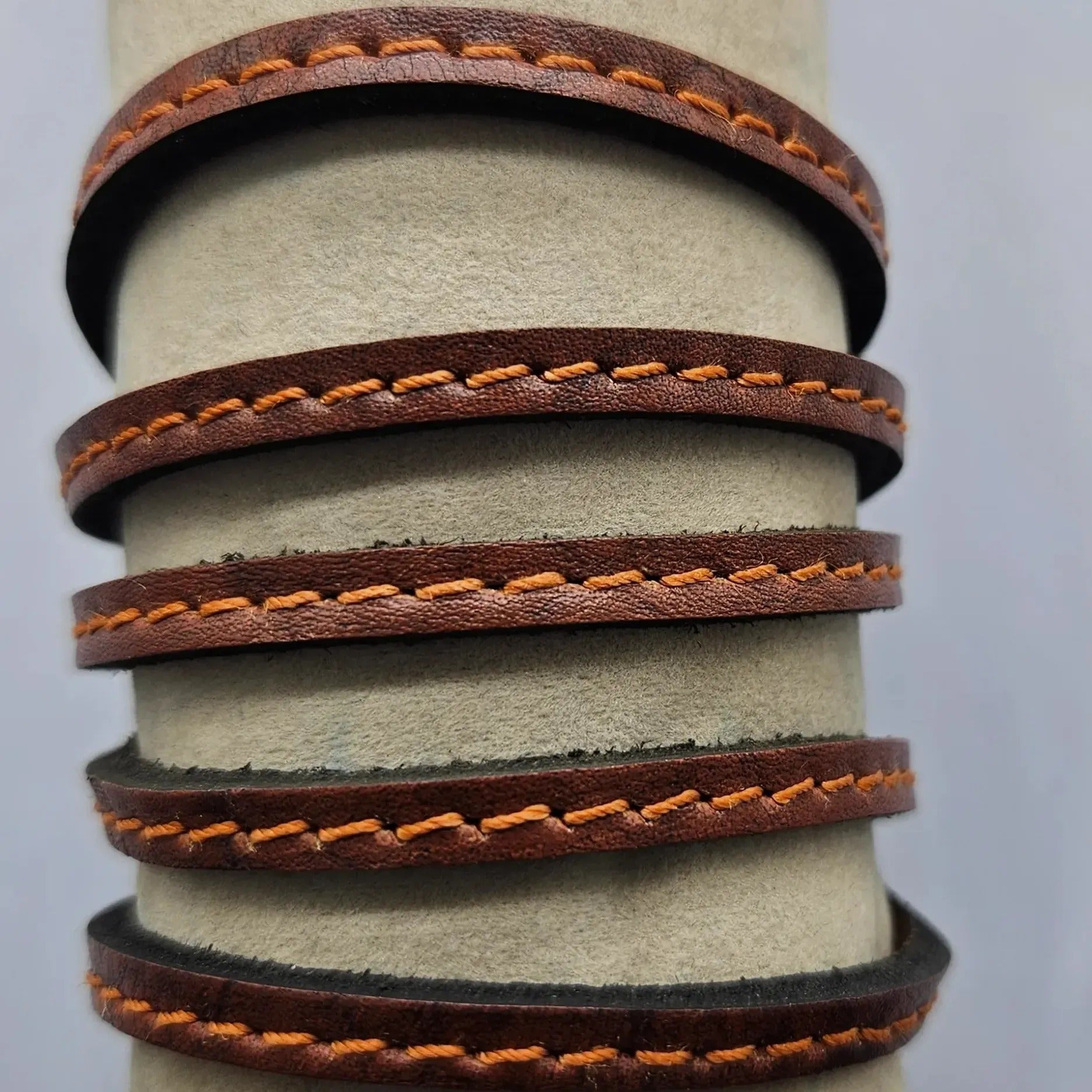 4x5mm Brown Special Stitched Genuine Leather. Made from real leather. Suitable for bracelet and jewelry designs. Price per meter. High quality does not fade does not stretch specially produced. Contains no harmful substances and has passed all chemical tests. Colors may vary depending on screen settings and ambient lighting. Avoid contact with chemicals liquids and perfumes for long-term use.