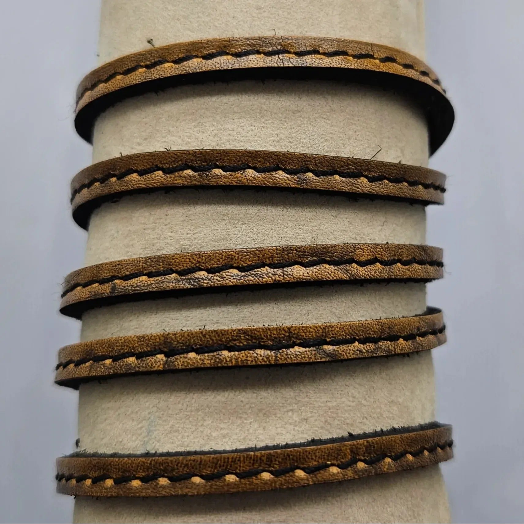 4x5mm Brown Special Stitched Genuine Leather. Made from real leather. Suitable for bracelet and jewelry designs. Price per meter. High quality does not fade does not stretch specially produced. Contains no harmful substances and has passed all chemical tests. Colors may vary depending on screen settings and ambient lighting. Avoid contact with chemicals liquids and perfumes for long-term use.