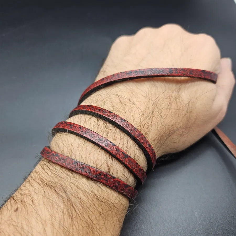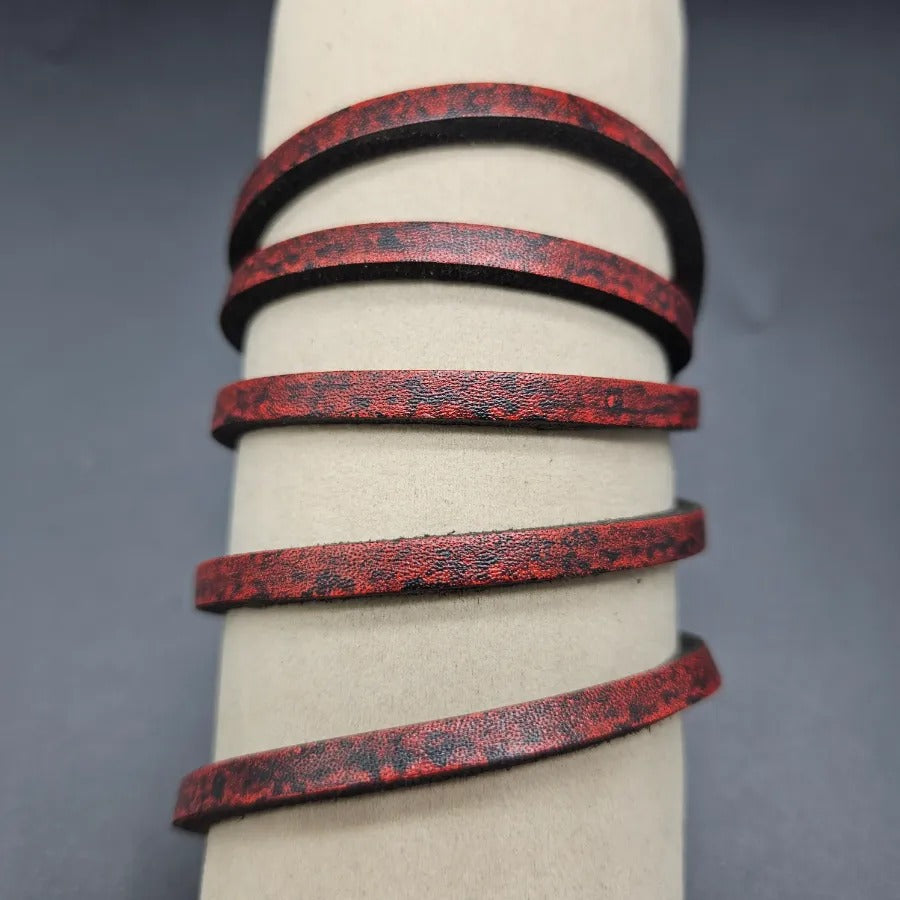 4x5mm Mixed Metallic Colored Genuine Leather. Made from real leather. Suitable for bracelet and jewelry designs. Price per meter. High quality does not fade does not stretch specially produced. Contains no harmful substances and has passed all chemical tests. Colors may vary depending on screen settings and ambient lighting. Avoid contact with chemicals liquids and perfumes for long-term use.