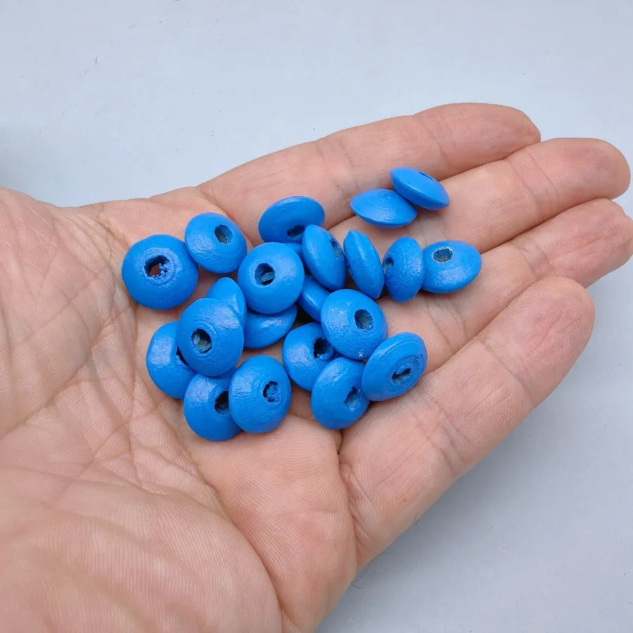 Light Blue color wooden bead. The package contains approximately 48-52 beads. Colors may vary according to monitor and light settings. Wooden beads can be used in accessory designs such as necklaces bracelets earrings keychains and in hobbies like macrame decorative items etc.