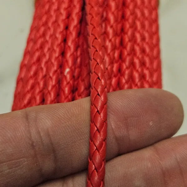5mm Tube Weave Hard Red Faux Leather can be used in bracelet and jewelry designs. The price is for 5 meters. It is of high quality does not fade does not stretch and is specially produced. Our products are not made from scrap PVC faux leather; they are made from first-class high-quality PU faux leather. It contains no harmful substances and has passed all chemical tests. Colors may vary depending on screen settings and ambient light. For long-lasting use avoid contact with chemicals liquids and perfumes.