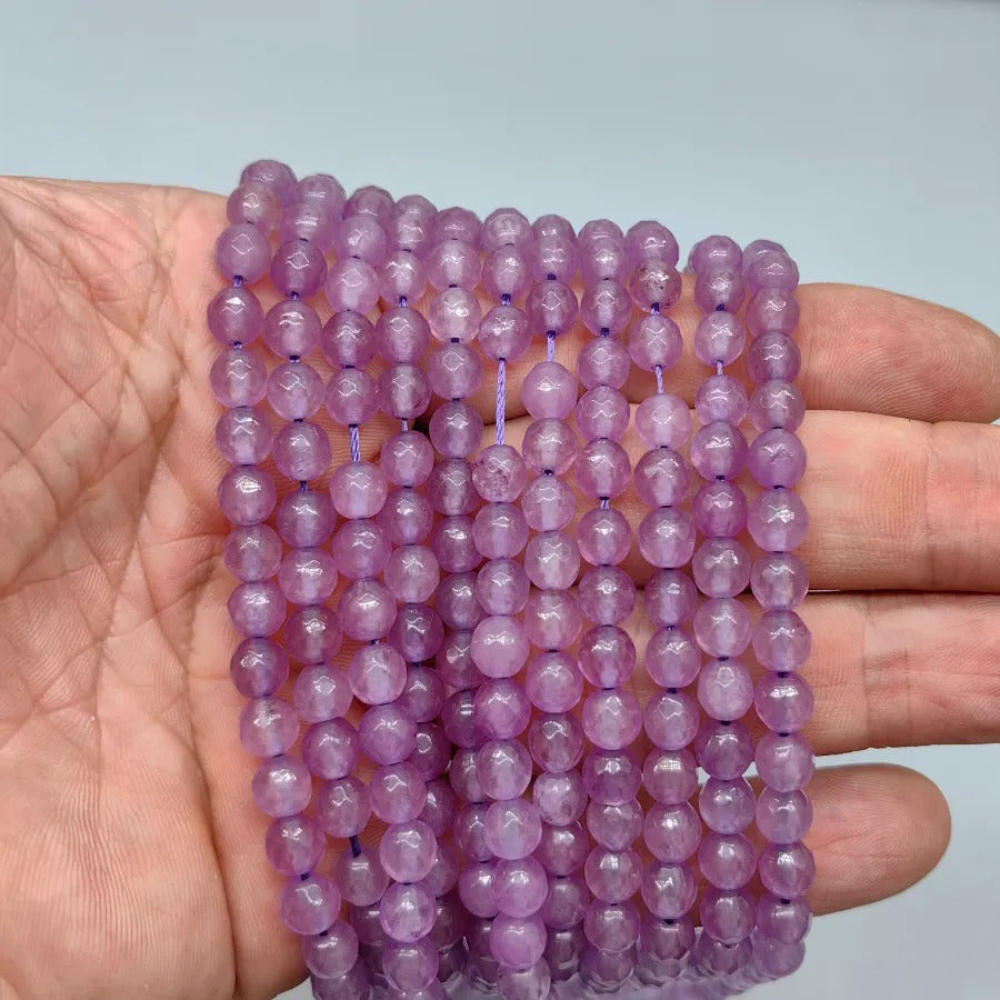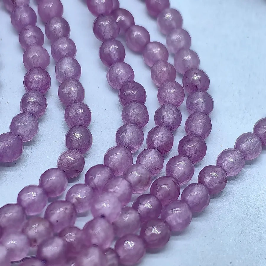 6 mm Faceted Quartz Jade Natural Stone Strand. Strand price. Approximately 64 stones per strand. Natural stones may contain different patterns veins and colors depending on the source. Colors may vary slightly due to light and camera settings.