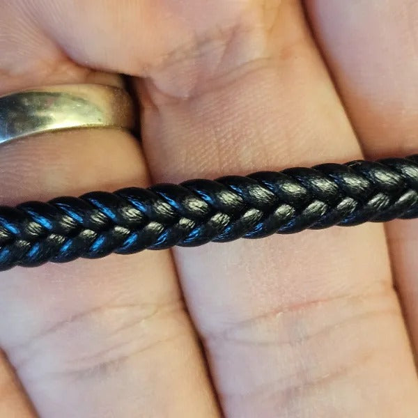 6mm Flat Weave Black Faux Leather can be used in bracelet and jewelry designs. The price is for 5 meters. It is of high quality does not fade does not stretch and is a special production. Our products are not PVC faux leather made from leftover materials; they are 1st class high-quality PU faux leather. It does not contain any harmful substances to health and has passed all chemical tests. Colors may vary depending on screen settings and ambient light. For long-term use take care to avoid contact with chemicals liquids and perfumes.