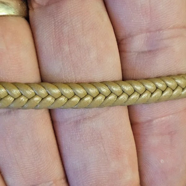 6mm Flat Weave Tan Faux Leather can be used in bracelet and jewelry designs. The price is for 5 meters. It is of high quality does not fade does not stretch and is a special production. Our products are not PVC faux leather made from leftover materials; they are 1st class high-quality PU faux leather. It does not contain any harmful substances to health and has passed all chemical tests. Colors may vary depending on screen settings and ambient light. For long-term use take care to avoid contact with chemicals liquids and perfumes.