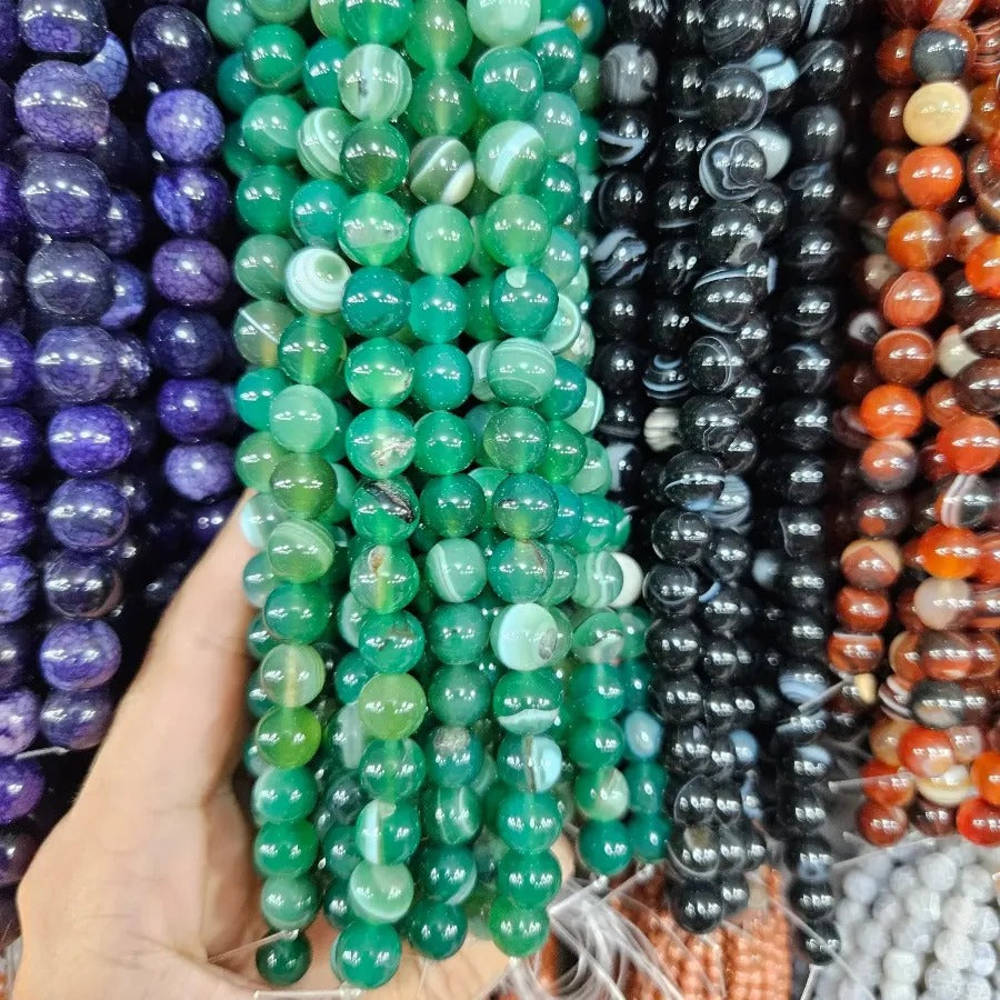 6 MM Green White Veined Agate Natural Stone Strand DTB0041-6