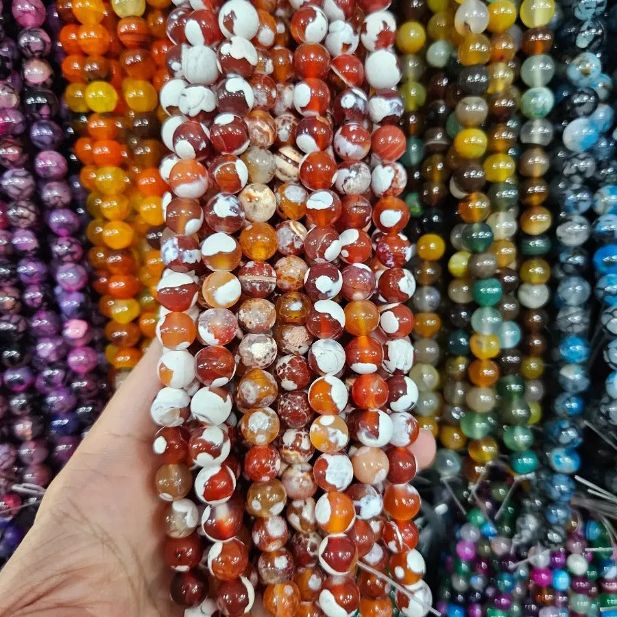 6 MM Orange White Agate Natural Stone Strand. Strand price. Approximately 64 stones per strand. Natural stones may contain different patterns veins and colors depending on the source. Colors may vary slightly due to light and camera settings.