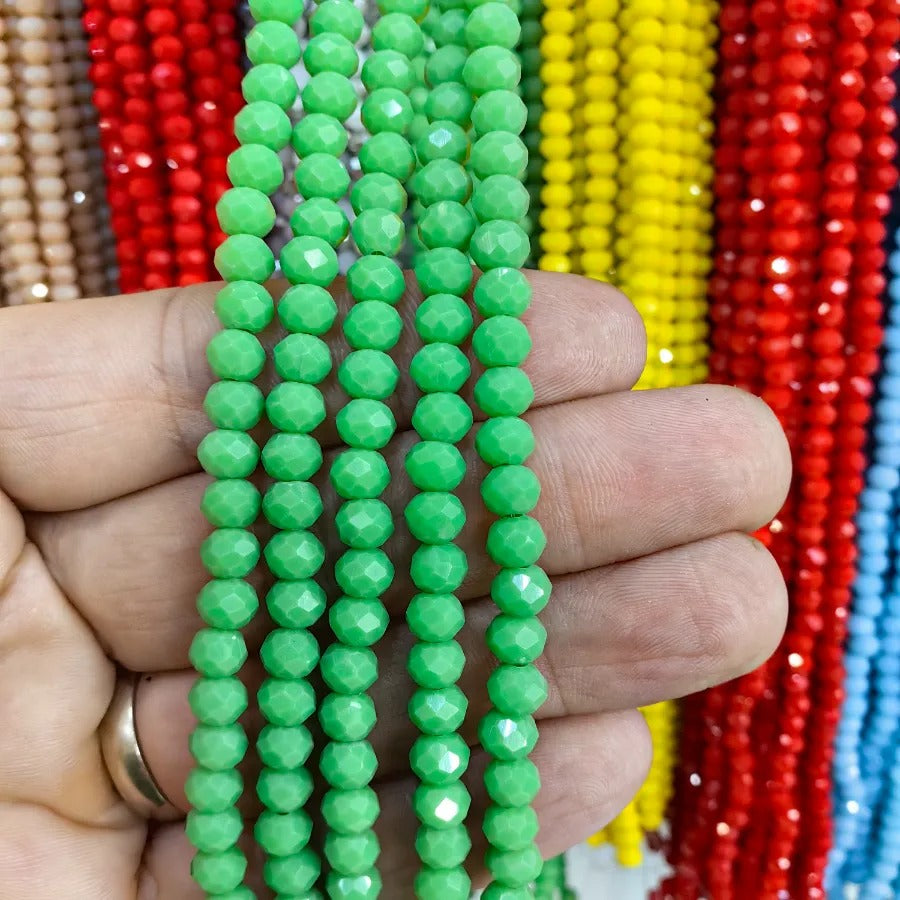 6mm Round Cut Chinese Crystal Beads. 6mm Oval Crystal. Sold in a single strand. Each strand contains approximately 88 - 92 beads. Crystal beads can be used in necklace bracelet and anklet designs. Crystal beads are made from glass. Their faceted cuts reflect light giving them a shiny appearance. Avoid contact with chemicals and perfume for long-term use. Contains no harmful materials. Colors may vary depending on screen settings and ambient light.