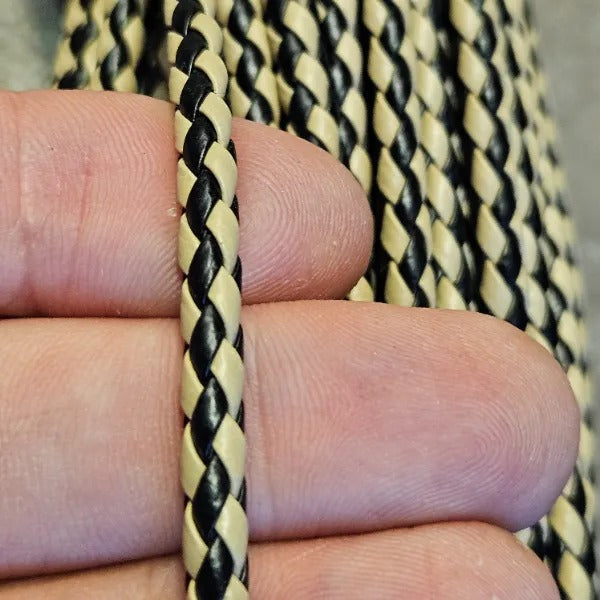 6 mm Two-Tone Black Beige Tube Braid Faux Leather AL0028