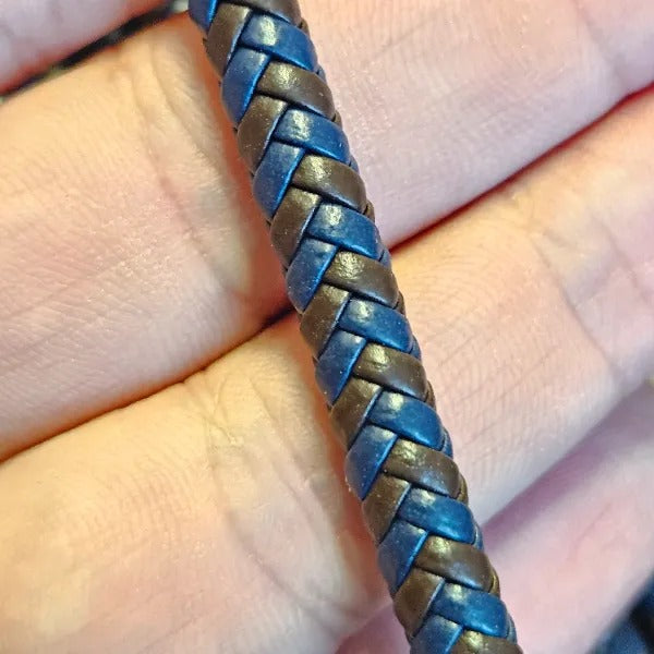 6 mm Two-Tone Coffee Navy Blue Flat Tube Braid Faux Leather AL0034