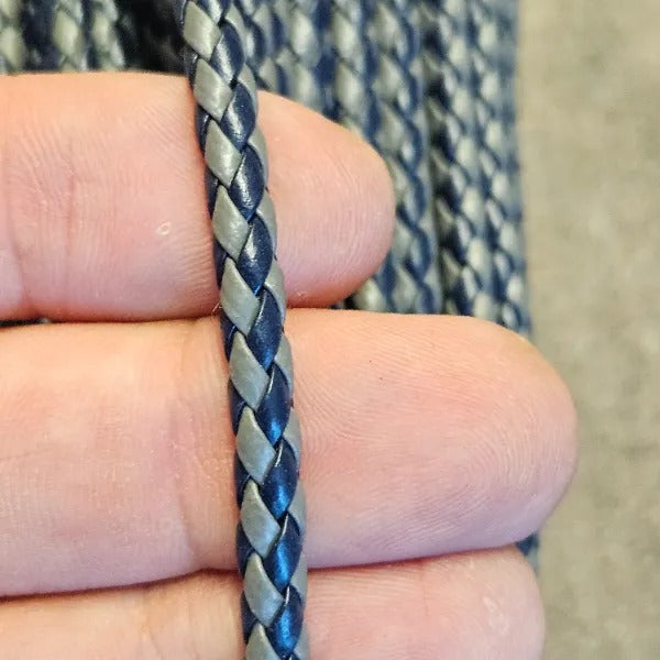 6 mm Two-Tone Navy Blue Gray Tube Braid Faux Leather AL0024