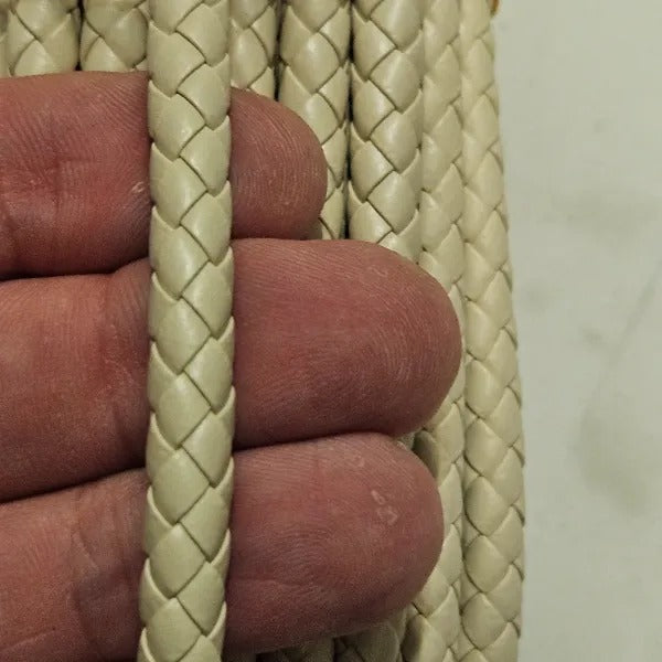 7mm Tube Weave Stiff Cream Faux Leather can be used in bracelet and jewelry designs. The price is for 5 meters. It is of high quality does not fade does not stretch and is a special production. Our products are not PVC faux leather made from leftover materials; they are 1st class high-quality PU faux leather. It does not contain any harmful substances to health and has passed all chemical tests. Colors may vary depending on screen settings and ambient light. For long-term use take care to avoid contact with chemicals liquids and perfumes.