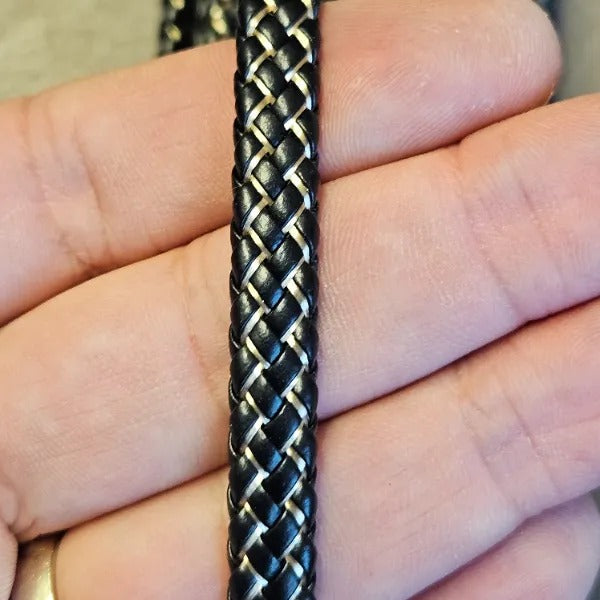 8mm Glitter Threaded Faux Leather Double Color Black Gold Yellow can be used in bracelet and jewelry designs. The price is for 5 meters. It is of high quality does not fade does not stretch and is specially produced. Our products are not PVC faux leather made from leftover materials; they are 1st class high-quality PU faux leather. It does not contain any harmful substances to health and has passed all chemical tests. Colors may vary depending on screen settings and ambient light. For long-term use avoid contact with chemicals liquids and perfumes.