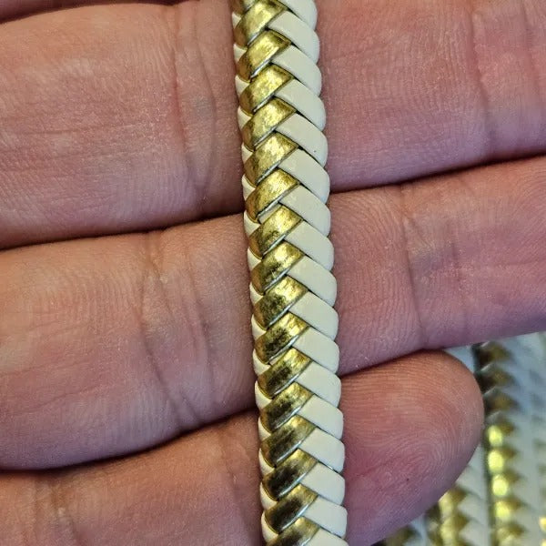 8mm Glitter Special Weave Beige Gold Yellow Faux Leather can be used in bracelet and jewelry designs. The price is for 5 meters. It is of high quality does not fade does not stretch and is specially produced. Our products are not PVC faux leather made from leftover materials; they are 1st class high-quality PU faux leather. It does not contain any harmful substances to health and has passed all chemical tests. Colors may vary depending on screen settings and ambient light. For long-term use avoid contact with chemicals liquids and perfumes.
