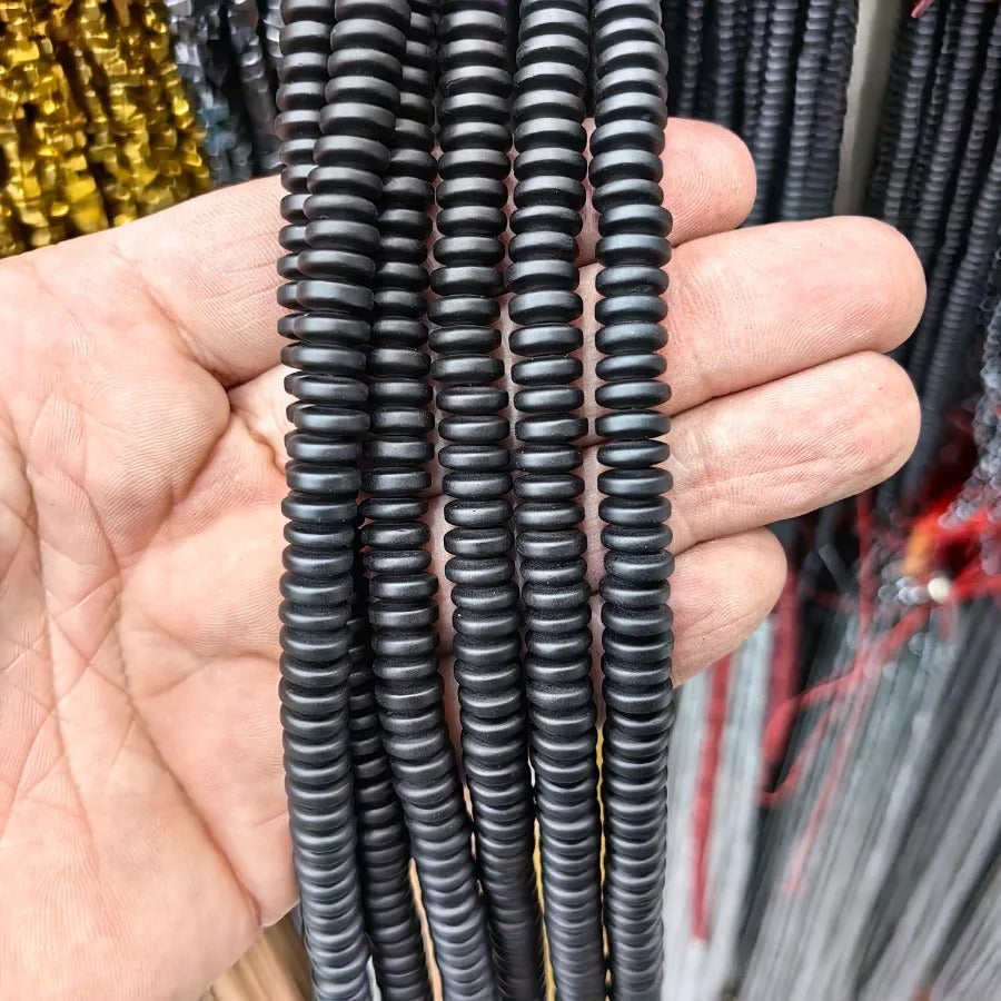 8 mm Matte Black Rondelle Hematite Natural Stone DTH0101-MatBlack