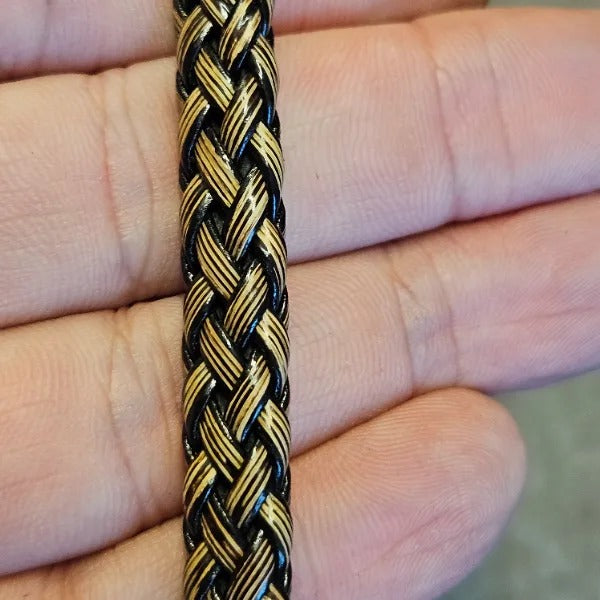8mm Stiff Cable Weave Double Color Gold Black Faux Leather can be used in bracelet and jewelry designs. The price is for 5 meters. It is of high quality does not fade does not stretch and is a special production. Our products are not PVC faux leather made from leftover materials; they are 1st class high-quality PU faux leather. It does not contain any harmful substances to health and has passed all chemical tests. Colors may vary depending on screen settings and ambient light. For long-term use take care to avoid contact with chemicals liquids and perfumes.
