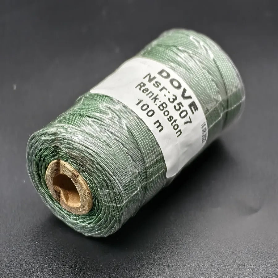 Dove Khaki Green - Boston Parachute Macrame Cord - Length: 100 Meters Thickness: 0.8mm - Price per unit. Extra Strong No Stretching or Fading. Product color may vary depending on screen settings and ambient lighting.