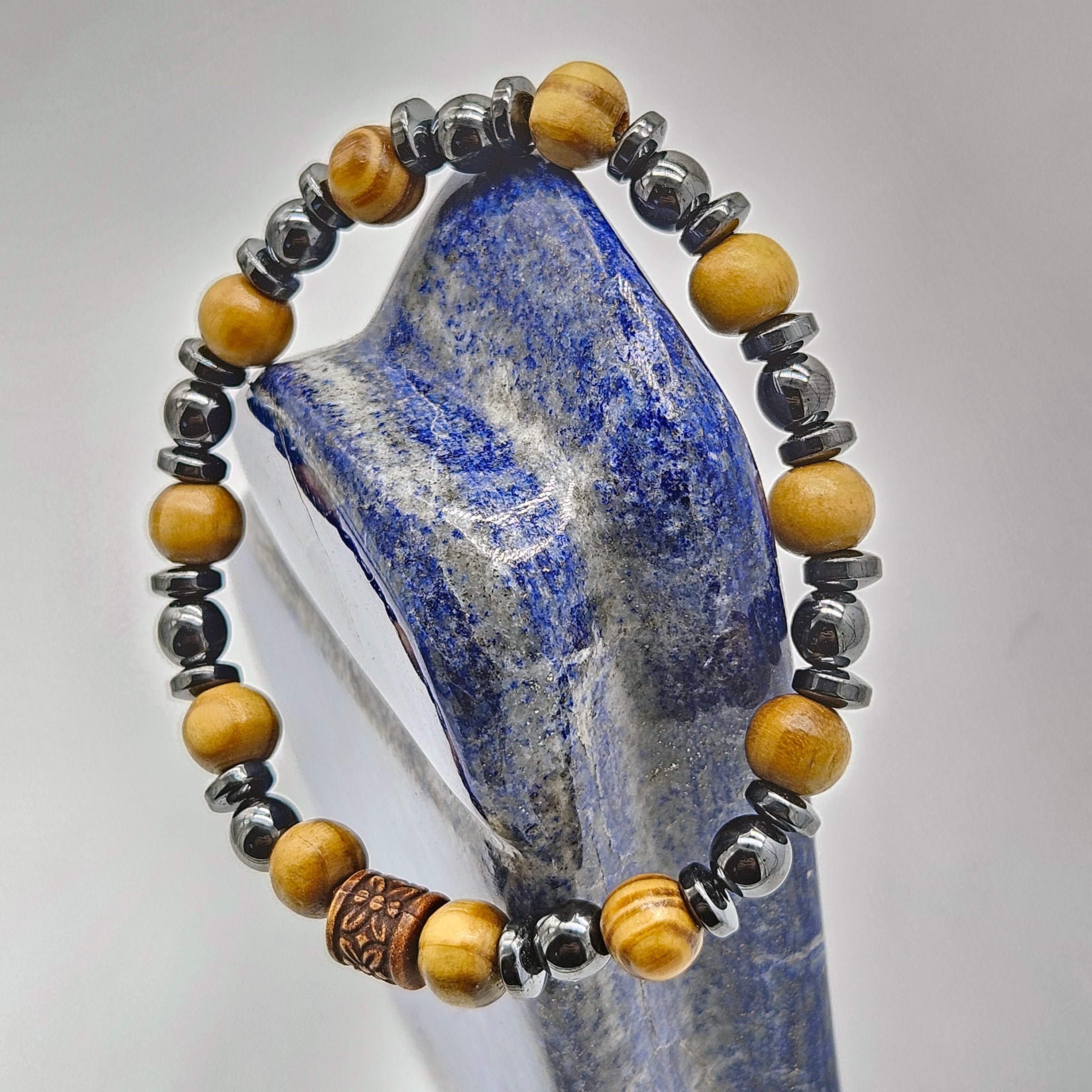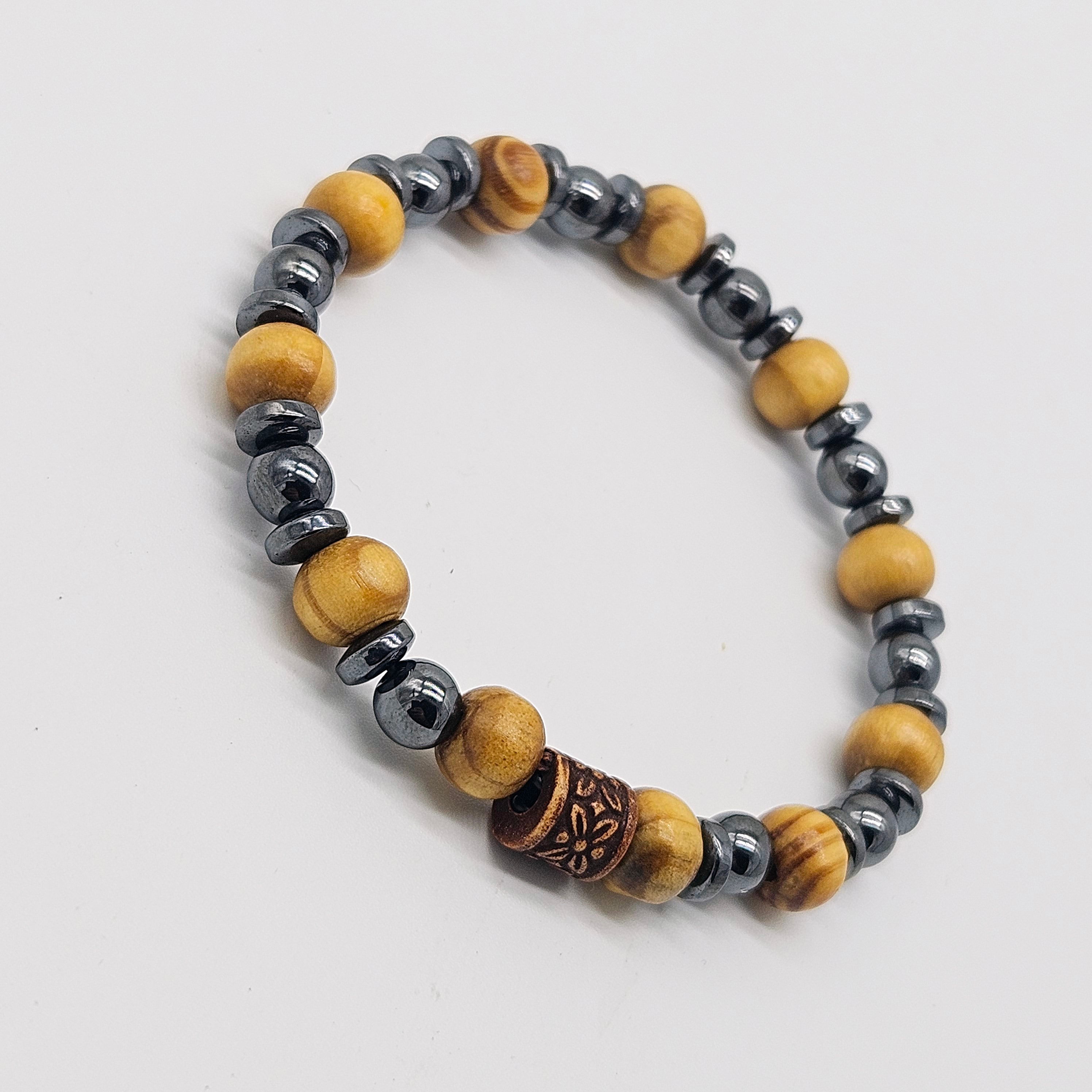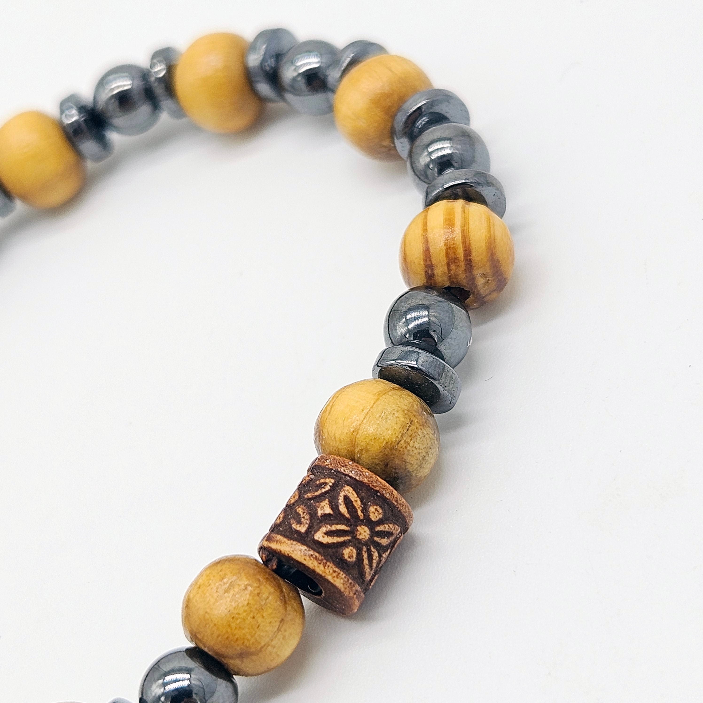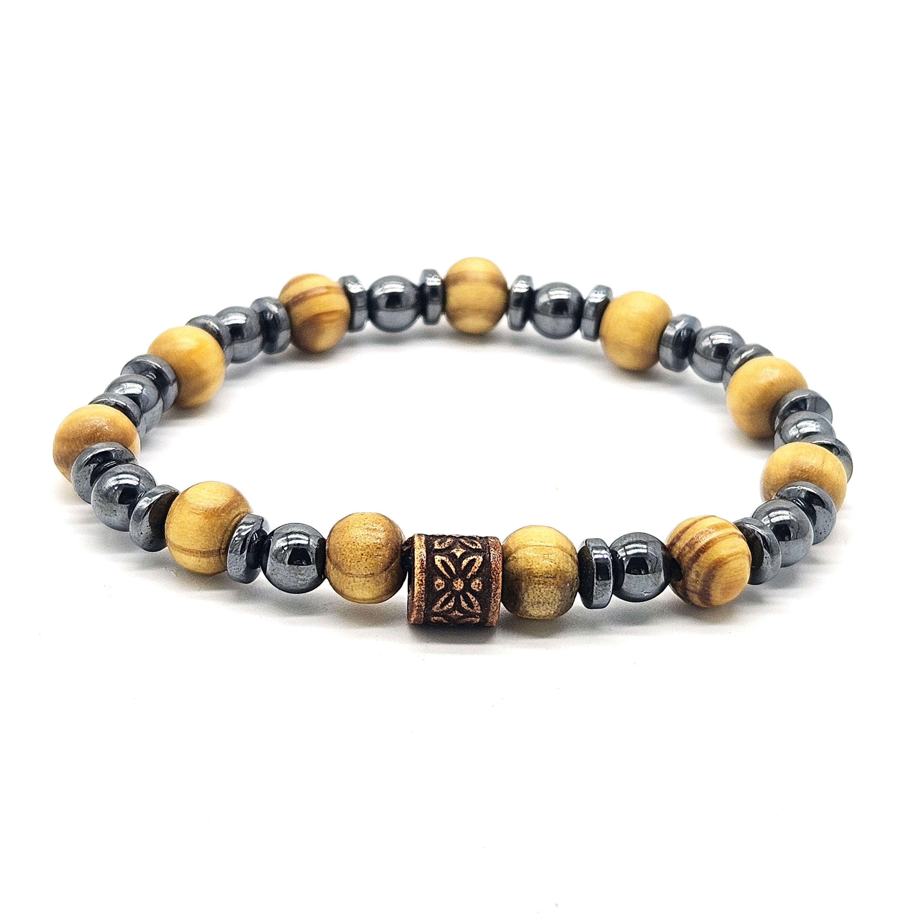 Men's Beaded Bracelet, Wood Beads, Hematitte Natural Stone Bracelet 8mm, Gemstone Bracelet for Men, Stacking Bracelet, Gift for Him,