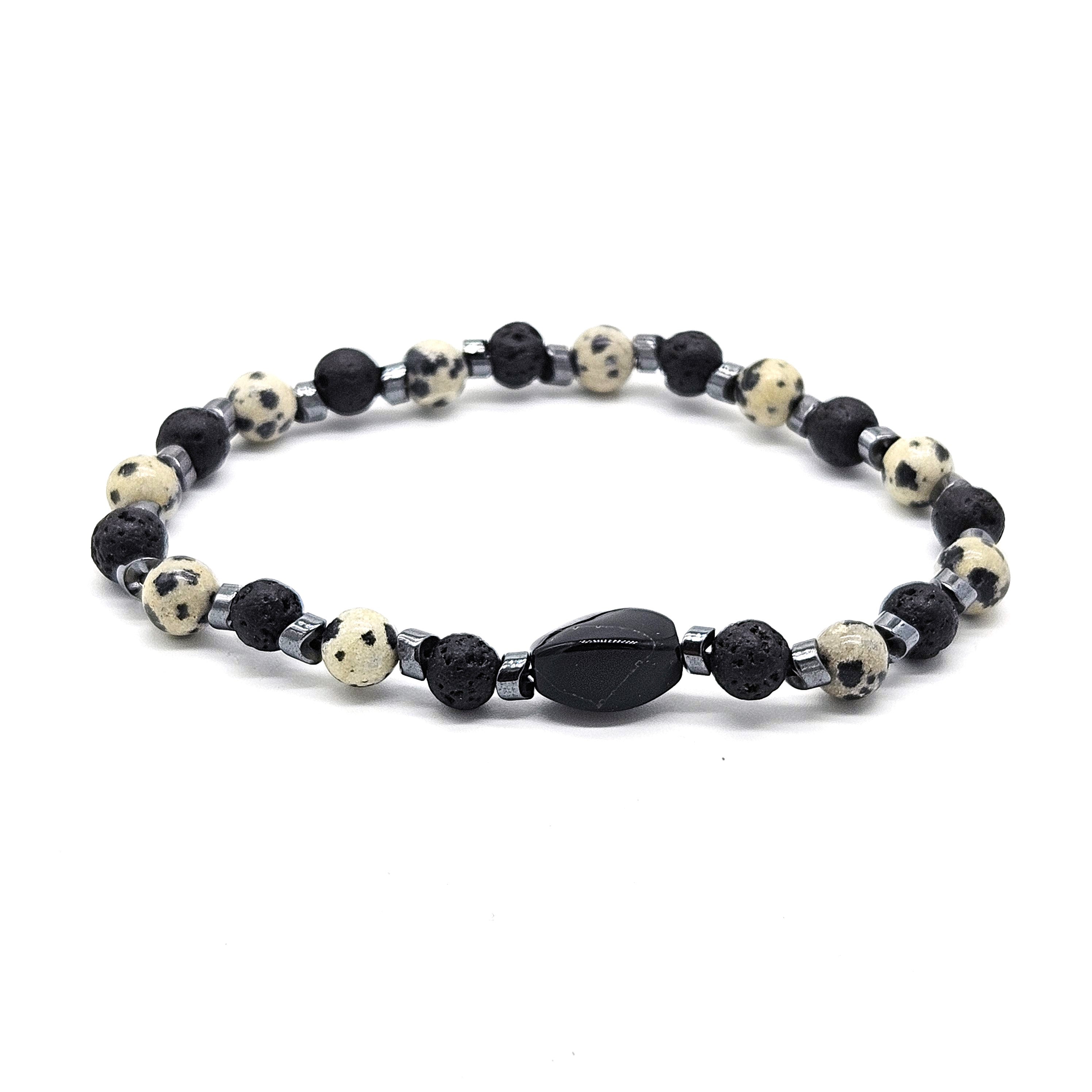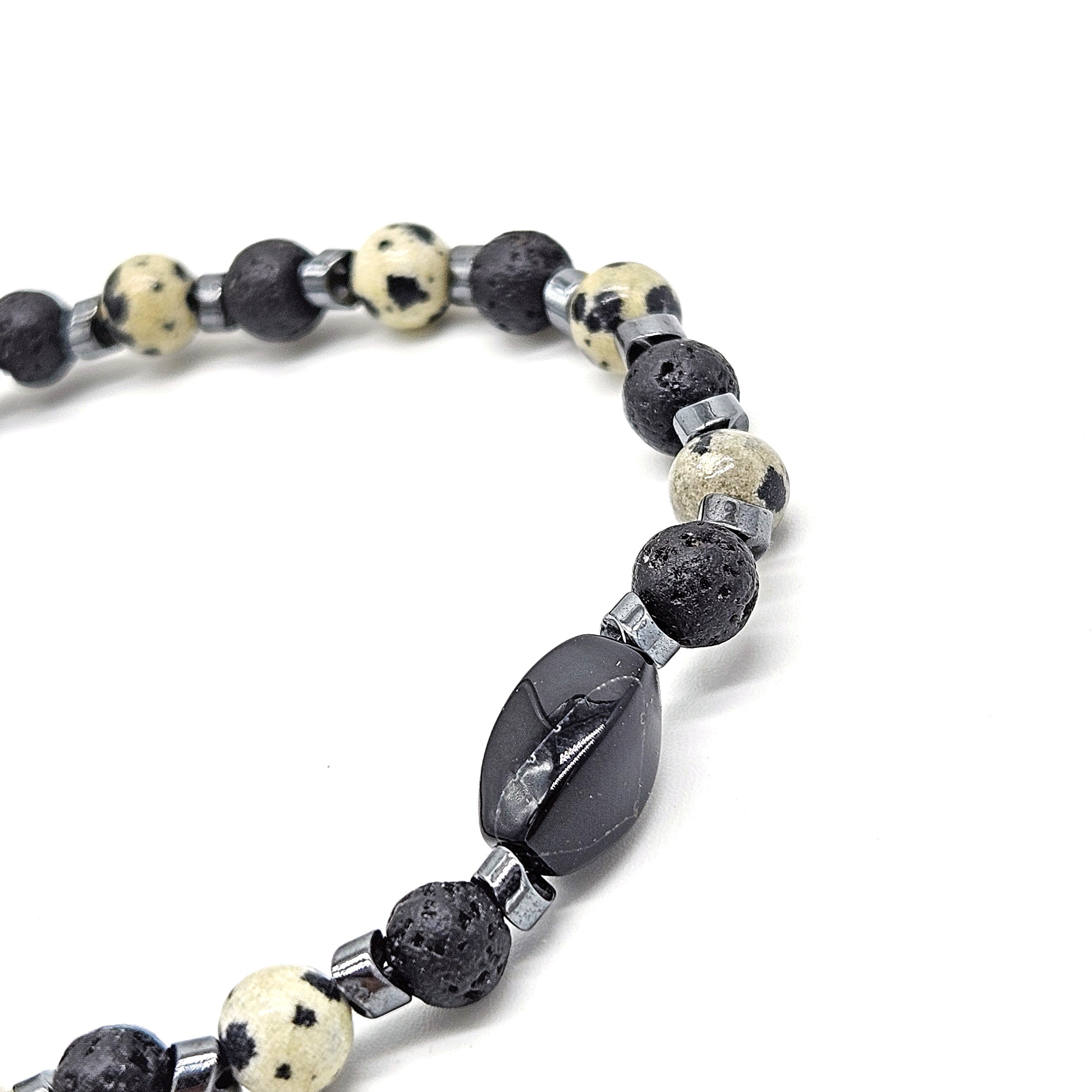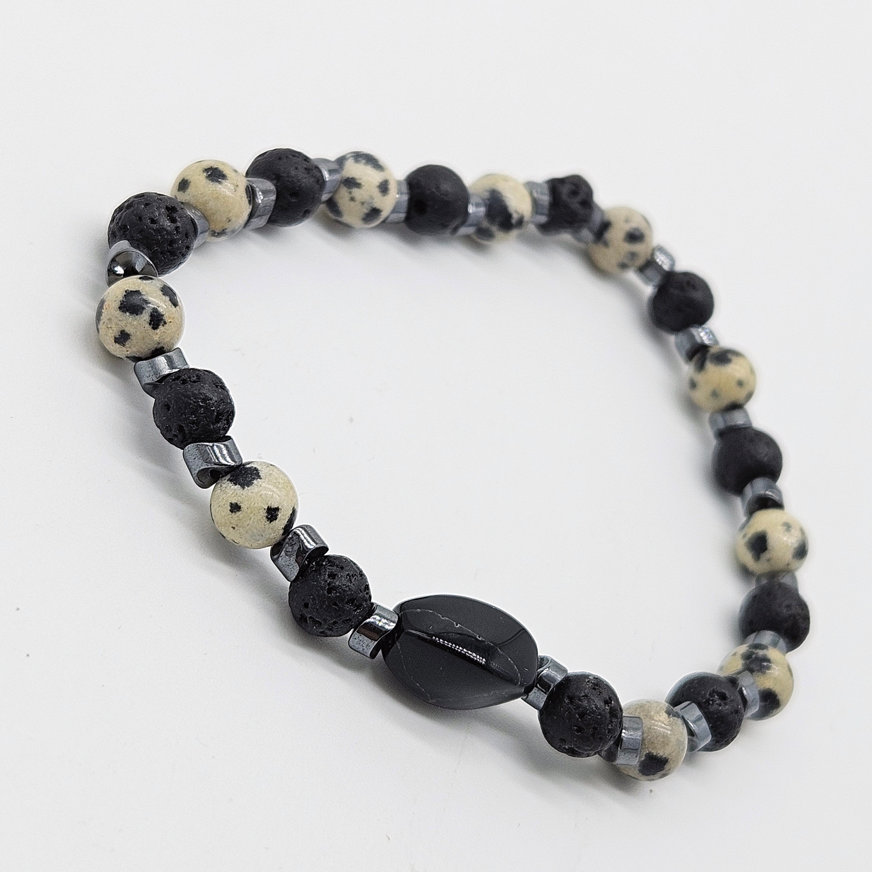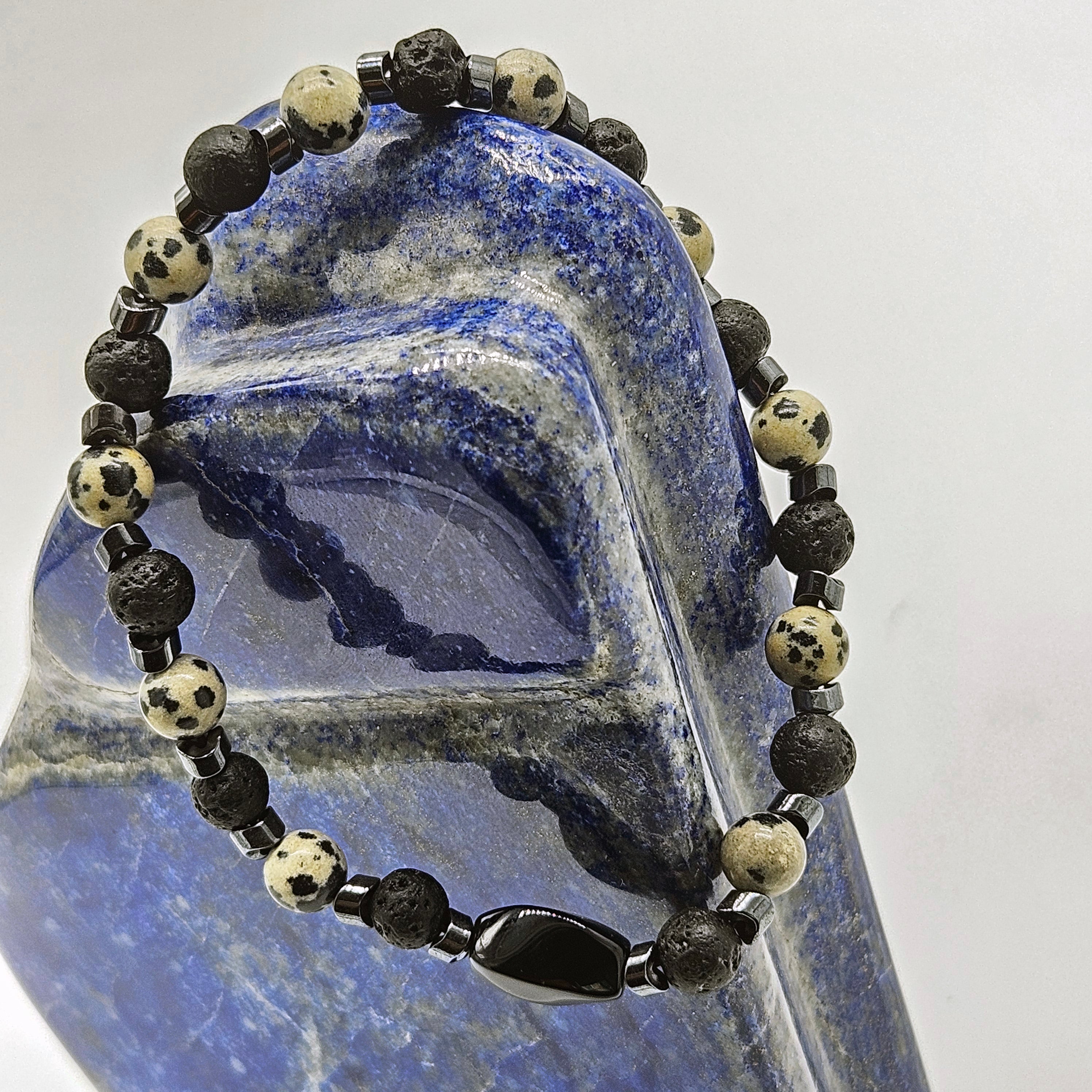 Men's Beaded Bracelet, Dalmatian Jasper, Onyx, Hematitte, Lava Natural Stone Bracelet 6mm, Gemstone Bracelet for Men, Stacking Bracelet, Gift for Him,