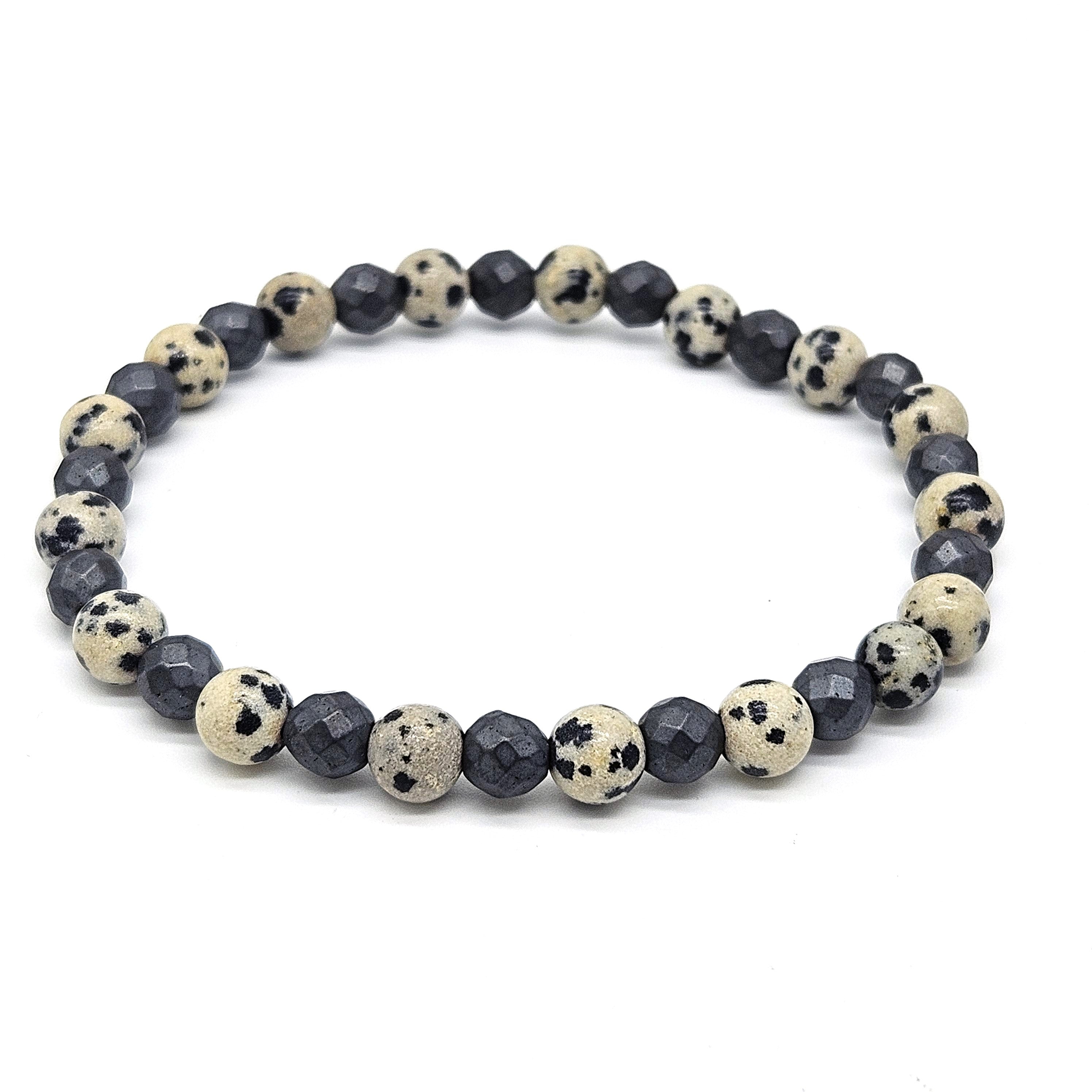 Men's Beaded Bracelet, Dalmatian Jasper, Hematitte Natural Stone Bracelet 6mm, Gemstone Bracelet for Men, Stacking Bracelet, Gift for Him,