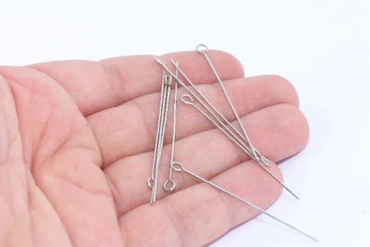 Silver color ring jewelry nail. Dimensions: 50mm. Rhodium plated brass. Sold in packages of 50 pieces. A Quality product, resistant to rust and tarnishing. Do not contact with chemicals and perfumes for long-term use. Passed all tests, does not contain harmful materials. Colors may vary depending on screen settings and ambient light.