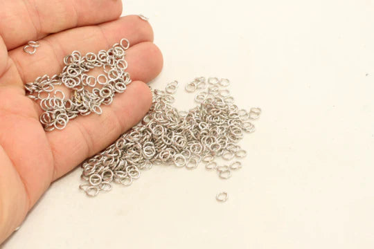 Silver Color Rhodium Plated Bracelet, Anklet, Necklace Small Ring, Ring Dangle Spacer. Dimensions: 4mm Thickness: 0.7mm. Sold in packages of 100 pieces. Package price. Rhodium plated on brass. A Quality product, resistant to rust and tarnishing. For long-term use, do not contact with chemicals and perfumes. Passed all tests, does not contain harmful materials. Colors may vary depending on screen settings and ambient light.