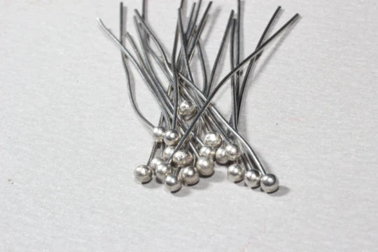 Silver Color Rhodium Plated Ball Head Jewelry Nail. Dimensions: 50 mm / 5 cm Thickness: 0.8 mm. Sold in packages of 50 pieces. It bends easily without breaking, it is flexible, you can easily give it the shape you want. It is plated on brass. It is an A Quality product, does not rust or tarnish. Do not contact with chemicals and perfumes for long-term use. It has passed all tests, does not contain harmful materials. Colors may vary depending on screen settings and ambient light.
