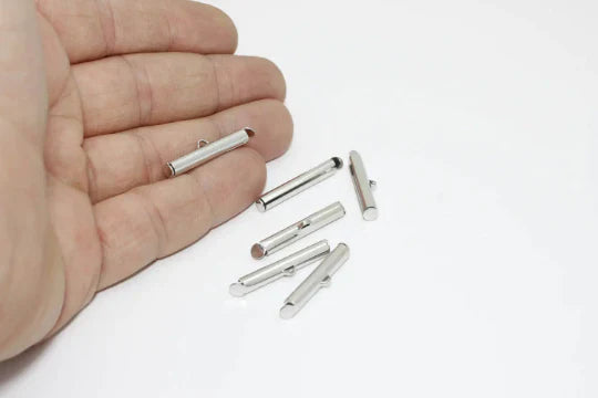 Silver Color Rhodium Plated Necklace Pipe Closing Clip, Pipe Closing Clip. Dimensions: 4x25mm Price is per piece. Rhodium plated on brass. A Quality product, resistant to rust and tarnishing. Do not contact with chemicals and perfumes for long-term use. Passed all tests, does not contain harmful materials. Colors may vary depending on screen settings and ambient light.